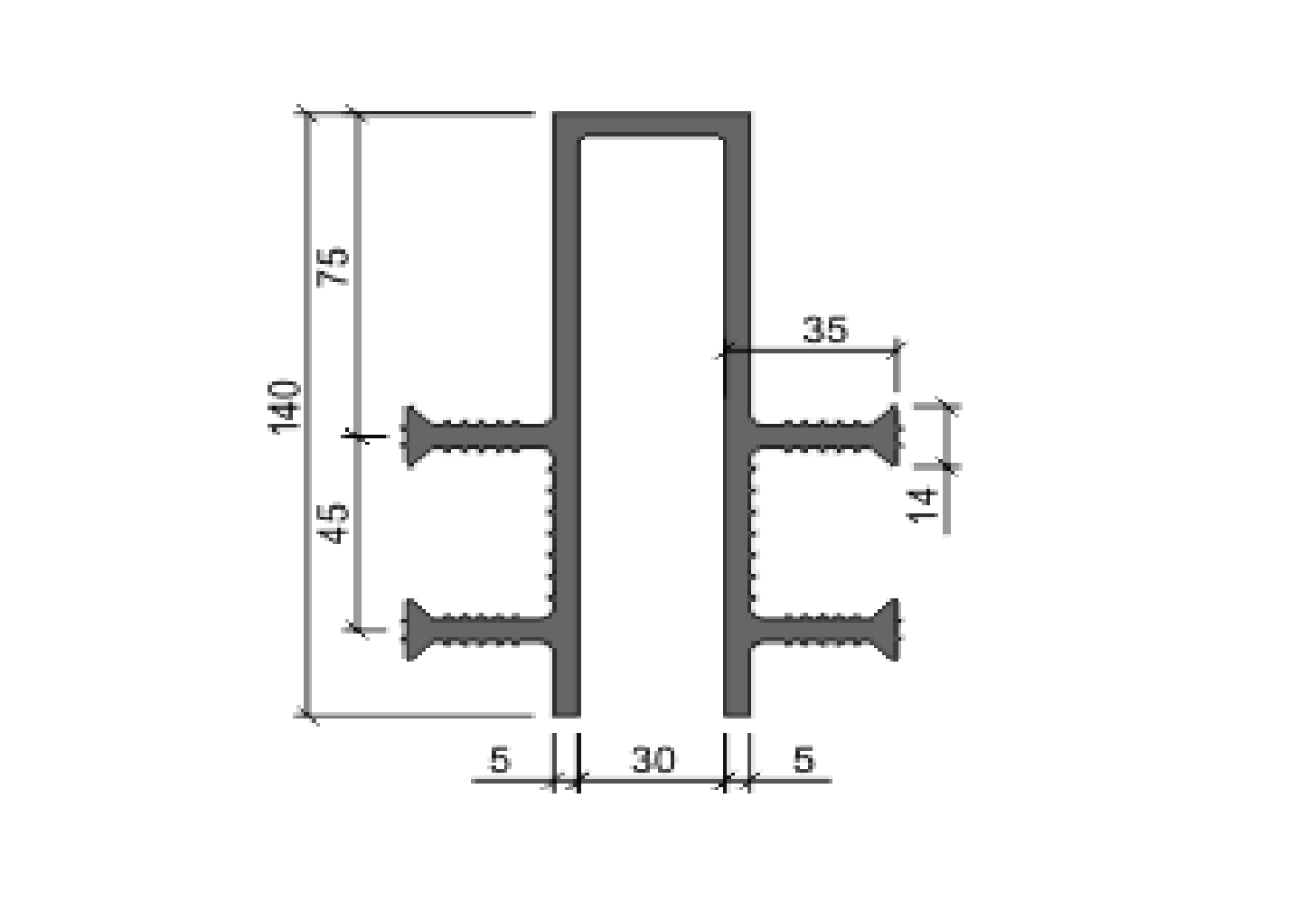 Гидроизоляционная шпонка тип ДЗ-140/30-4/35 (деформационная п-образная шир.30мм, ПВХ-П) ТУ-5775-001-02476787-2016