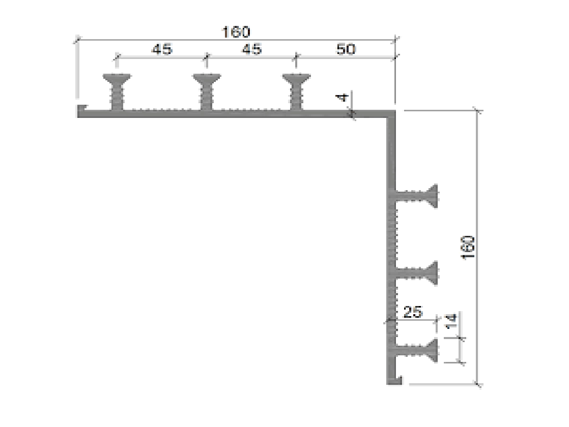 Гидроизоляционная шпонка АКВАСТОП ХО-УГЛ-160-6/25 (опалубочная для технологических швов угловая, ПВХ-П) ТУ 5772–001–58093526–11 применяется для герметизации технологических швов бетонирования оголовков свай фундаментных плит при строительстве гидротехнических, заглубленных и подземных сооружений.