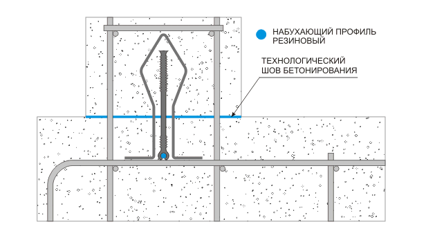Гидроизоляционная шпонка АКВАСТОП ХВН-150 (1хØ6 внутренняя комбинированная для технологических швов, в комплекте скобы крепёжные 3шт. на пог.м., ПВХ-П) ТУ 5772–001–58093526–11 применяется для герметизации технологических швов бетонирования в местах сопряжений 'плита-стена' при строительстве гидротехнических, заглубленных и подземных сооружений. Внутренняя гидроизоляционная шпонка, скомбинированная с набухающим резиновым шнуром диаметром 6мм, поставляемым в комплекте, так же включены скобы крепёжные из расчёта 3 штуки на погонный метр, что позволяет значительно сократить глубину установки шпонки в бетон.