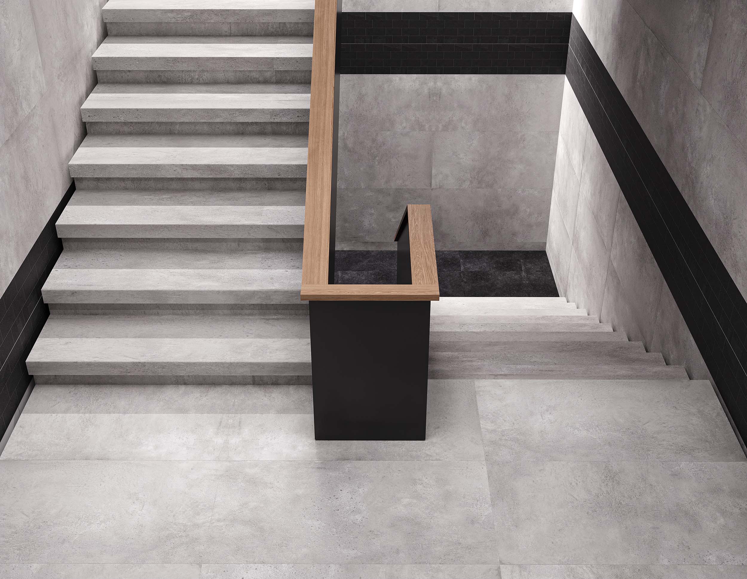 Коллекция Traffic — это эффектный мультиформатный керамогранит, имитирующий бетонную поверхность. Он станет хорошим выбором для интерьеров в стиле лофт, минимализм или хай-тек. Строгий дизайн приобретает особый шарм, благодаря интересной поверхности плит, мелким вкраплениям и текстуре наливного пола.