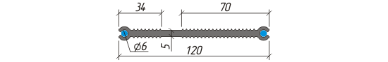 Гидроизоляционная шпонка тип ХВН-120 (2хØ6, внутренняя комбинированная, для технологических швов, ПВХ-П) ТУ-5775-001-02476787-2016