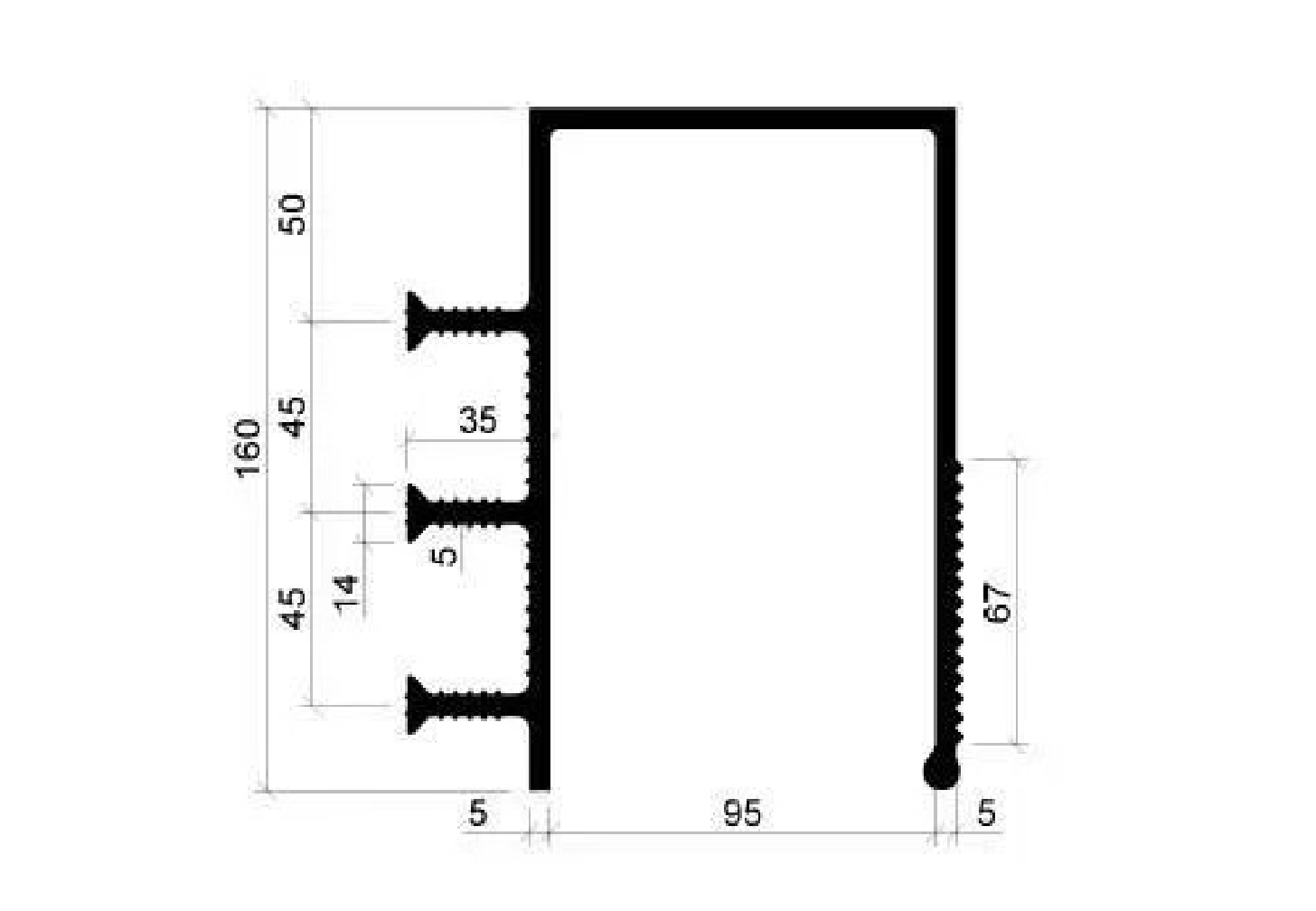 Гидроизоляционная шпонка тип ДЗС-160/100-3/35 (деформационная п-образная, для сопряжения к сущ.конструкциям шир.100мм, ПВХ-П) ТУ-5775-001-02476787-2016