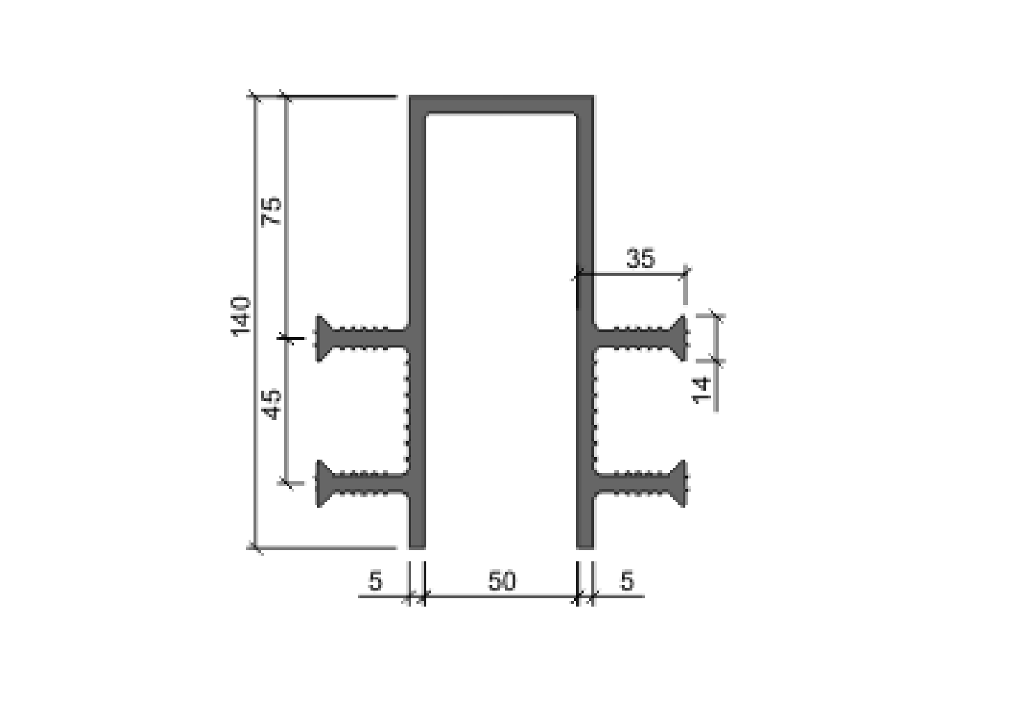 Гидроизоляционная шпонка АКВАСТОП ДЗ-140/50-4/35 (деформационная п-образная шир.50мм, ПВХ-П) ТУ 5772–001–58093526–11